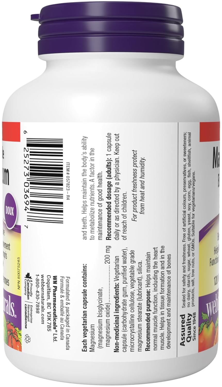 12 reviews for Webber Naturals Magnesium Bisglycinate 200 mg, 120 Capsules, Supports Bone and Muscle Functions, Vegan