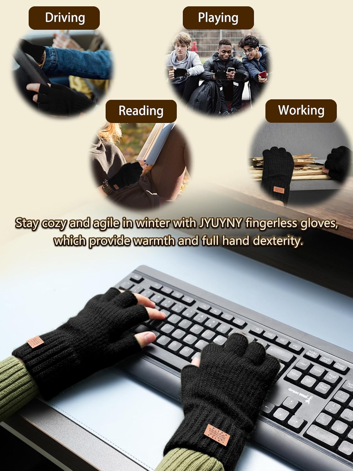 ✔️ Fingerless design — perfect for scrolling phones, typing, driving, or handling small items.