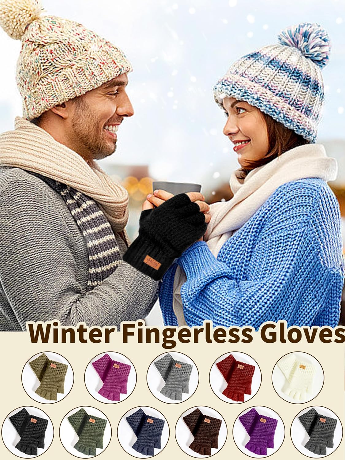 13 reviews for Winter Fingerless Gloves for Women Men, Warm Alpaca Wool Stretch Knit Cold Weather Adult Half Finger Glove for Driving
