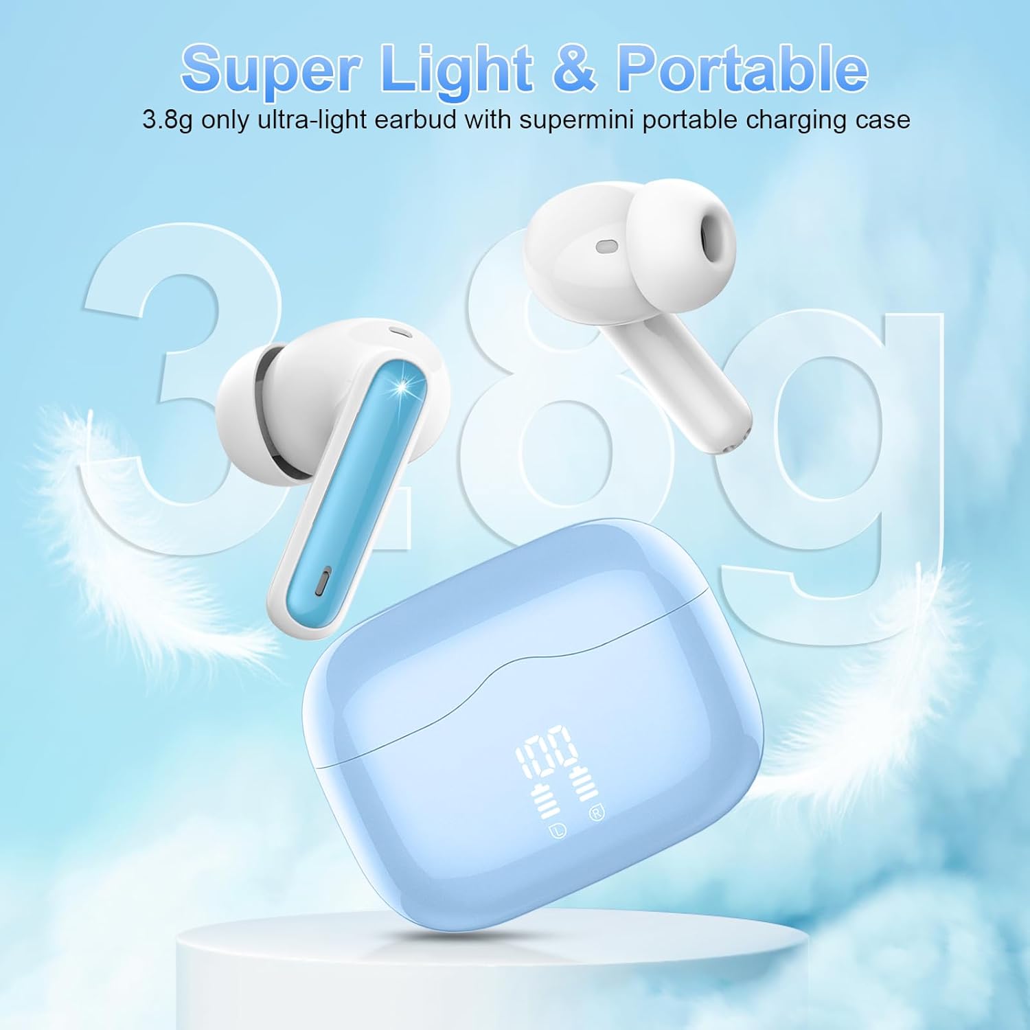 - Ergonomic Design and Lightweight: The wireless Bluetooth earbuds is ergonomically designed to fit the inner contours of the ear perfectly, even during extended use Bluetooth earphones, you won’t have to worry about discomfort or them slipping out. Mini charging case does not take up space to carry, each wireless ear buds weighs only 3.8 grams, so you won’t feel any burden even during extended wear.