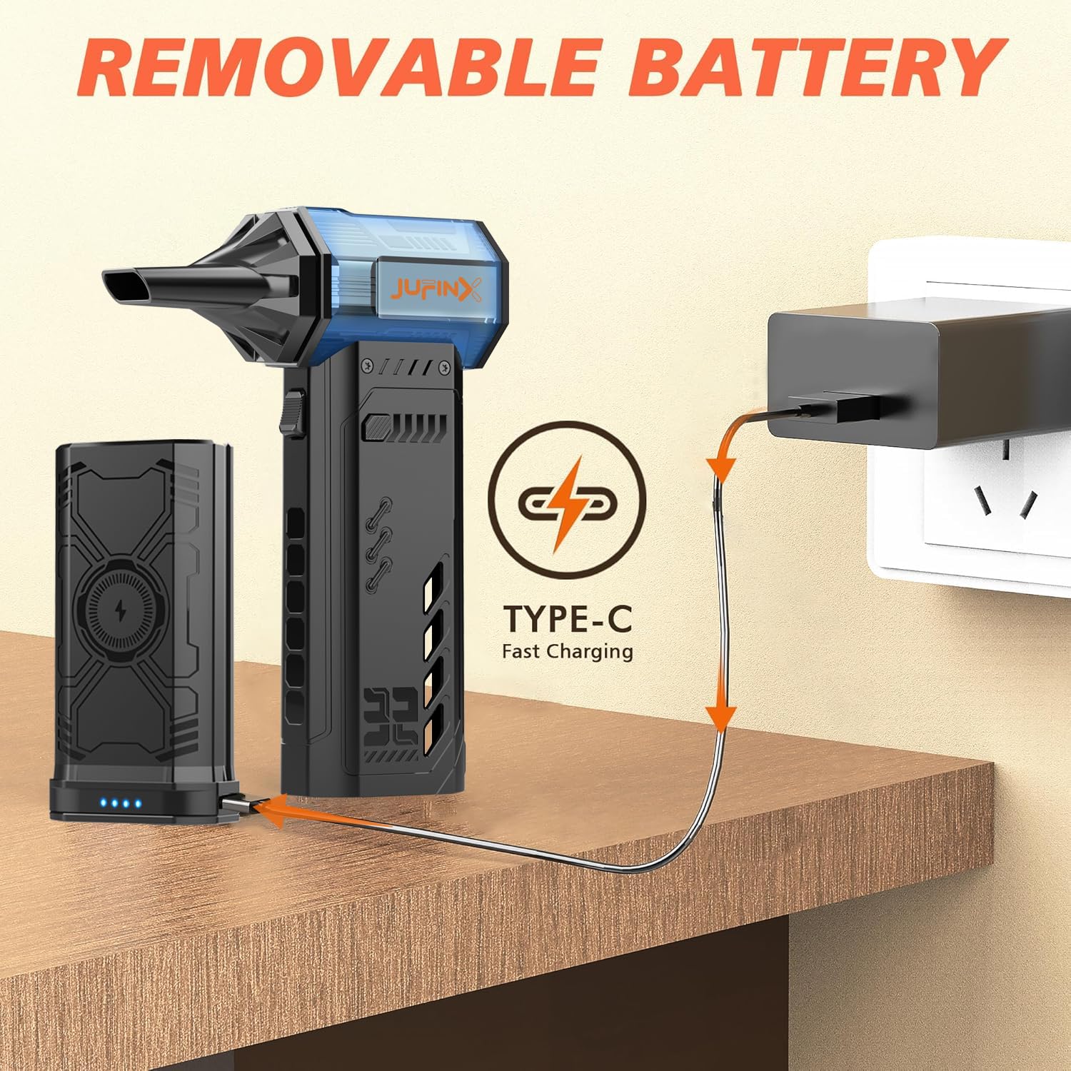 - Replaceable rechargeable battery for Non-Stop Operation: Equipped with an advanced swappable battery system (22.2Wh total), users can seamlessly replace batteries for continuous cleaning without interruption. Four flexible charging methods are supported: charge the tool or battery independently using Type-C (full charge in 2.5 hours). Provides up to 100 minutes of operation at the lowest speed setting. (Please fully charge before use. Backup batteries available separately.)