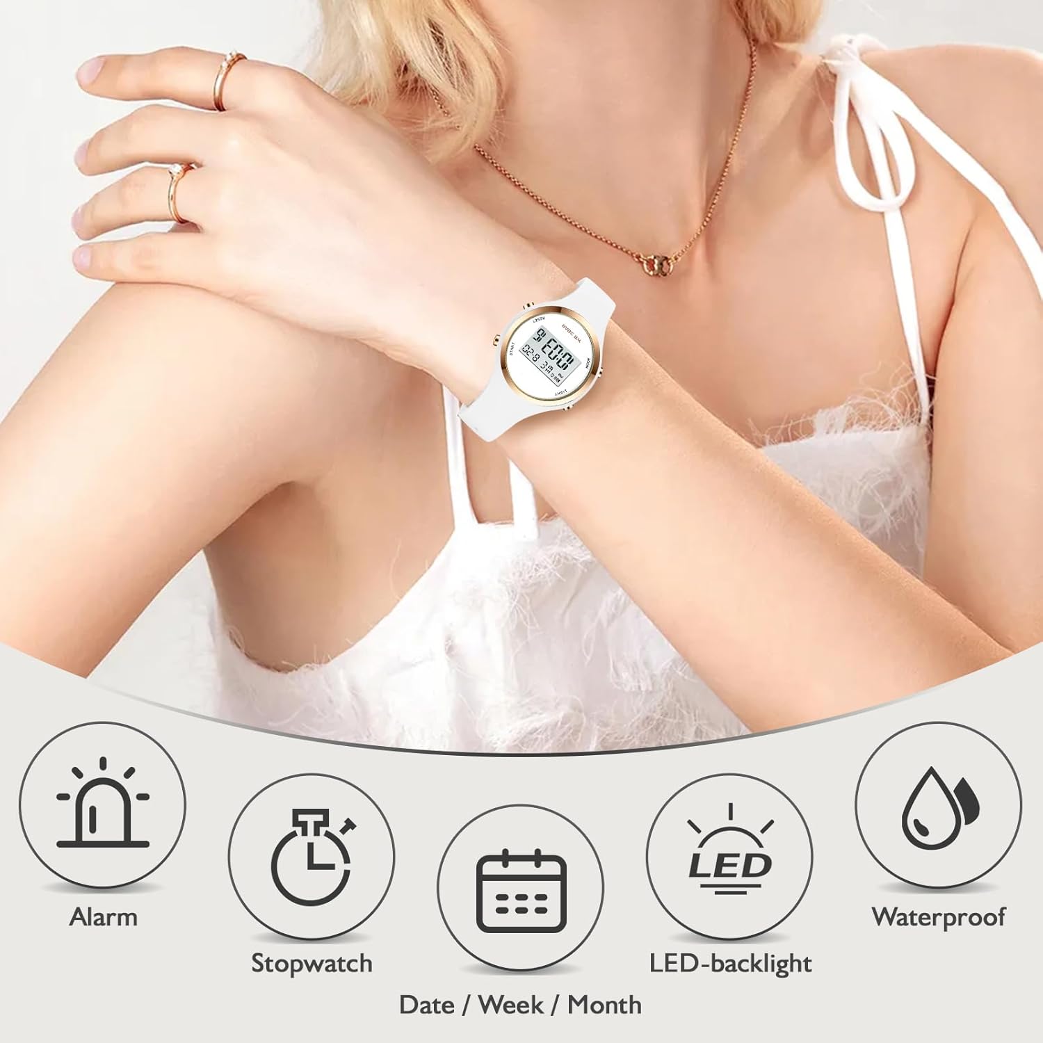 - Fashionable female digital watch, suitable for people who like to exercise, it can be used for outdoor and indoor sports or daily leisure use.